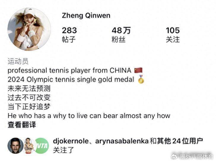 2026年2月中旬,郑钦文在社交平台上悄悄取消了对教练佩雷·里巴的关注,还更换了自己的头像,把个人简介改成了尼采的一句话:“一个人只要知道自己为什么而活,就可以忍受任何一种生活”,这件事没有人出来解释,里巴那边也没有动静,在职业网球圈里面,这种不打招呼就断联的做法很少见,通常说明合作结束得不太体面。